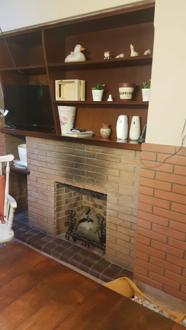 LIVING COMEDOR CON AMPLIO VENTANAL DE MADERA AL FRENTE Y REJAS, CON PISOS DE GRANITO Y HOGAR A LEÑOS A GAS.