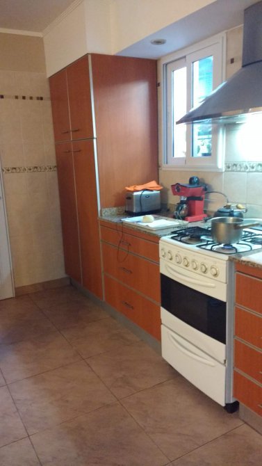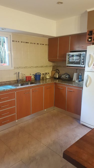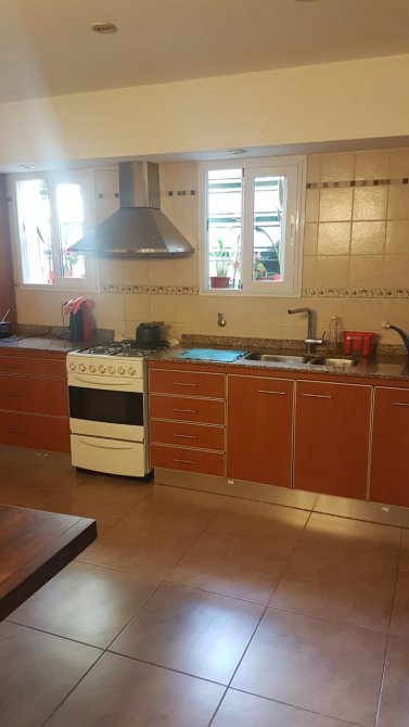 COCINA COMEDOR DIARIO MUY LUMINOSA, CON MUEBLES SOBRE Y BAJO MESADA CON DOBLE BACHA Y GRIFERÍA MONOCOMANDO.