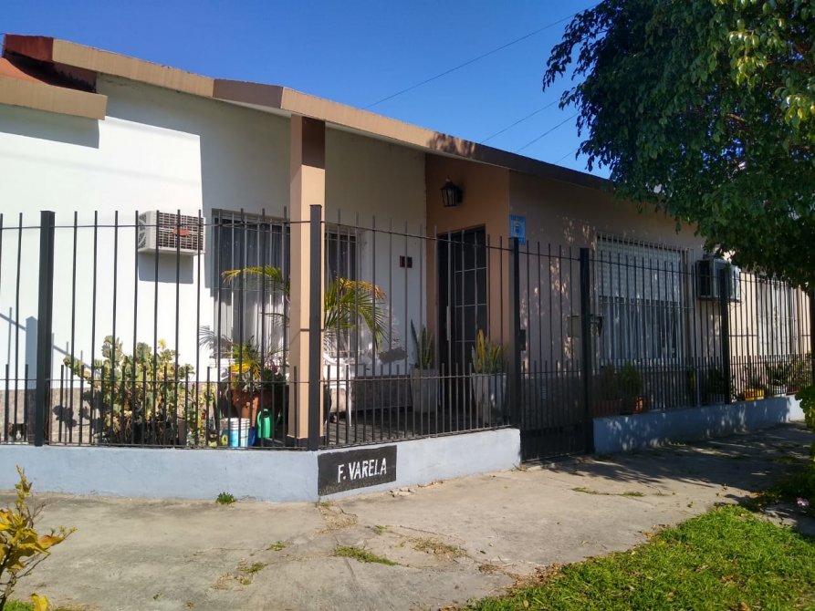 Se puede observar rejas al frente con un pequeño jardin y con entrada vehicular para dos autos.