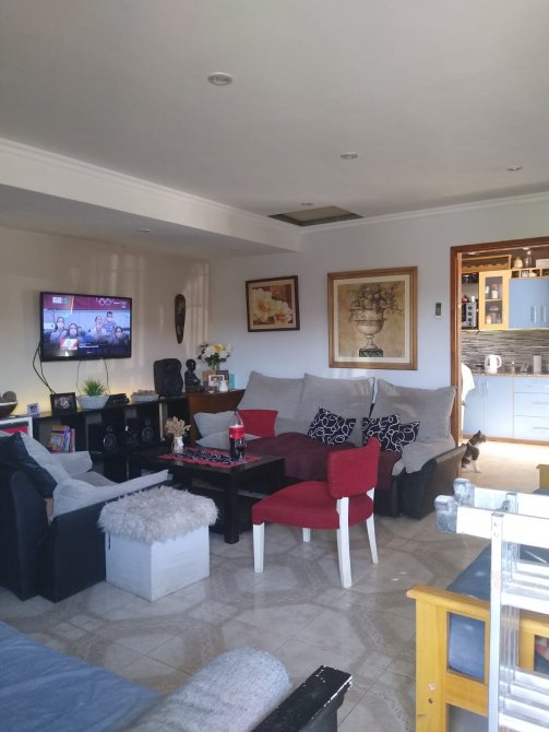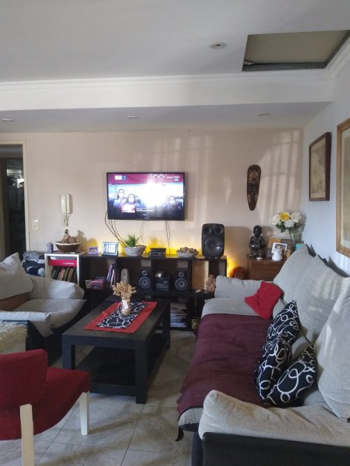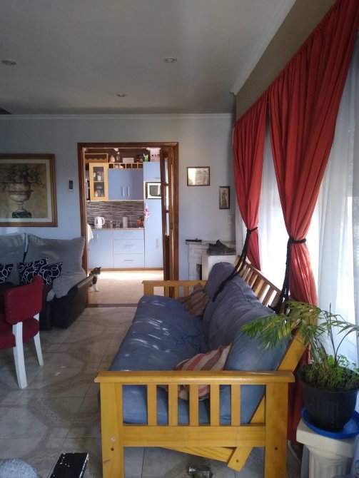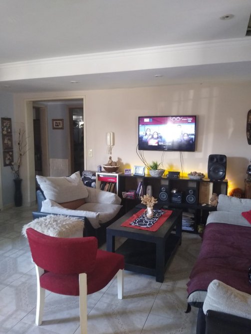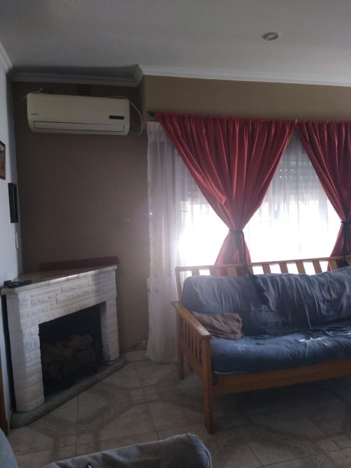 Al ingresar se encuentra el living comedor con puertas de aluminio con cielorrasos con finos detalles de yeso, hogar a leños y ventana de aluminio al frente.