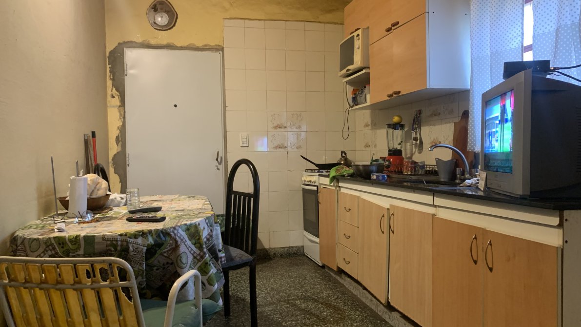 Al ingresar, te recibirá un amplio salón con una ventana que permite una vista hacia el frente de la propiedad, con vidrios repartidos. La cocina, integrada al comedor, está equipada con muebles tanto sobre como bajo la mesada, brindando un espacio funcional.