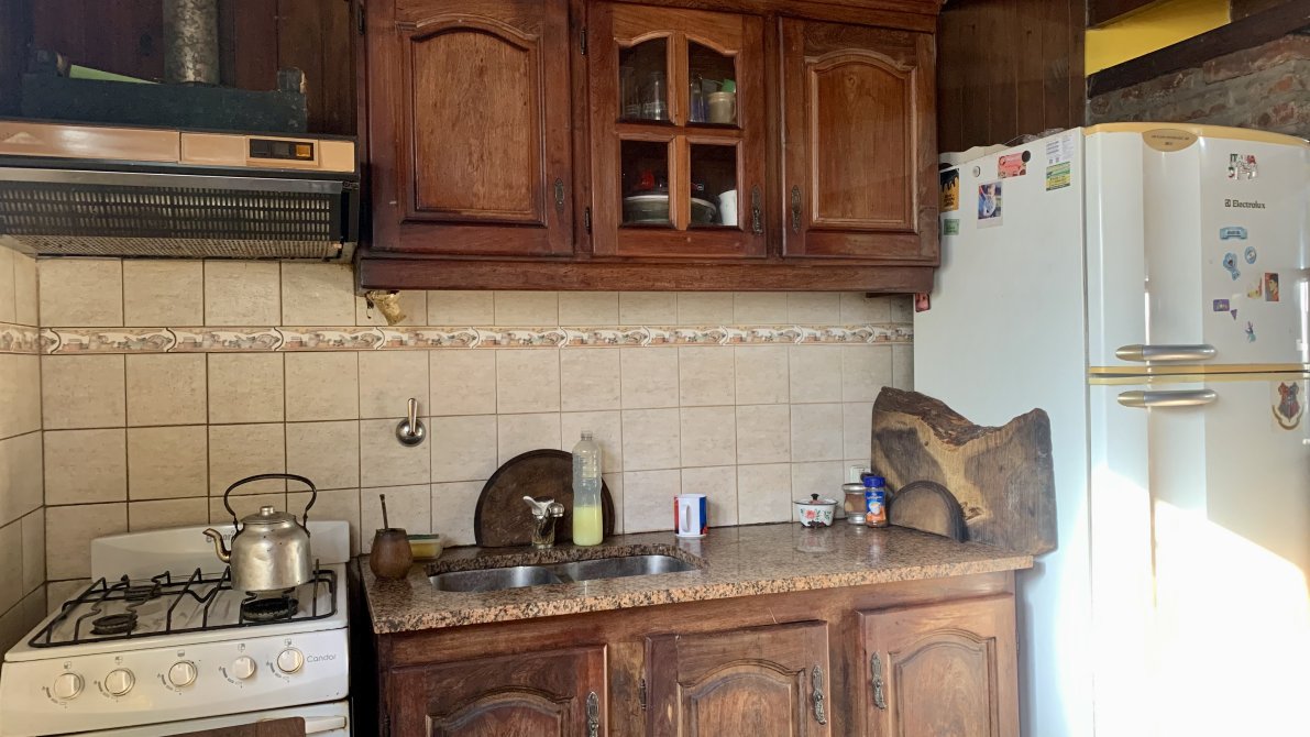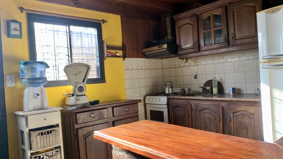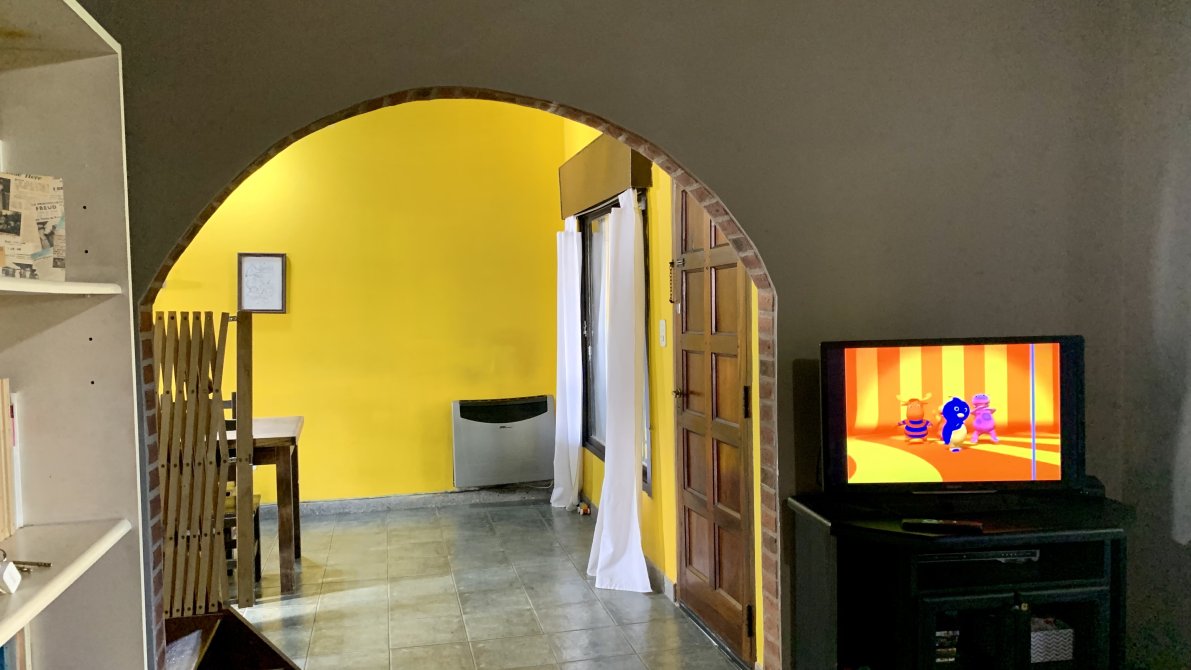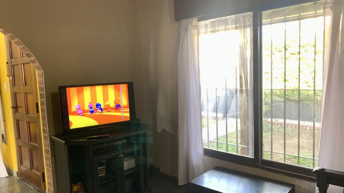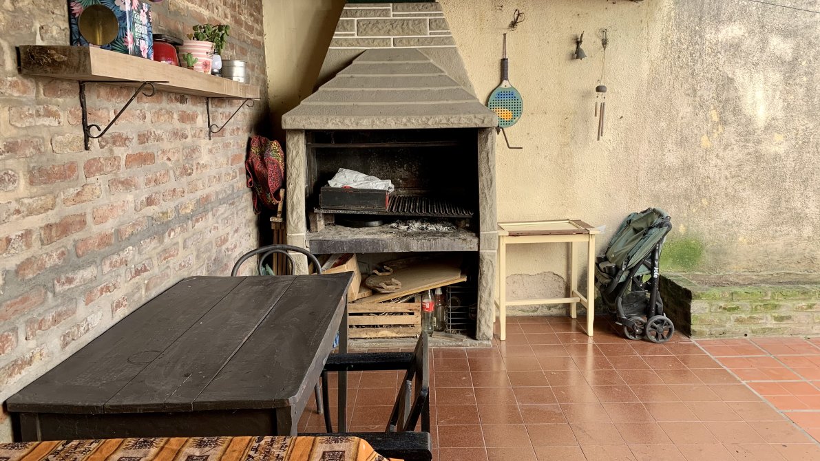 El frente de la casa está protegido por rejas y por un jardín perimetral que añade un toque de naturaleza. Al ingresar, nos recibe un amplio living comedor con pisos de cerámica y un gran ventanal que proporciona abundante luz natural. La cocina, integrada al living comedor mediante un pasa platos, tiene vistas al patio, ofreciendo una agradable conexión visual con el exterior.