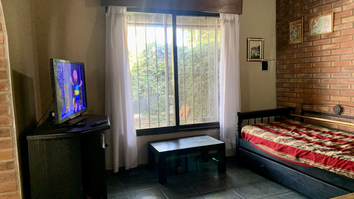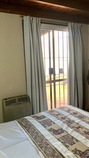 Junto al living comedor, una sala de estar con un ventanal al frente proporciona un espacio adicional para relajarse. Desde esta sala, un pasillo conduce a un baño completo y al dormitorio principal, que cuenta con una ventana hacia el patio, garantizando privacidad y luminosidad.