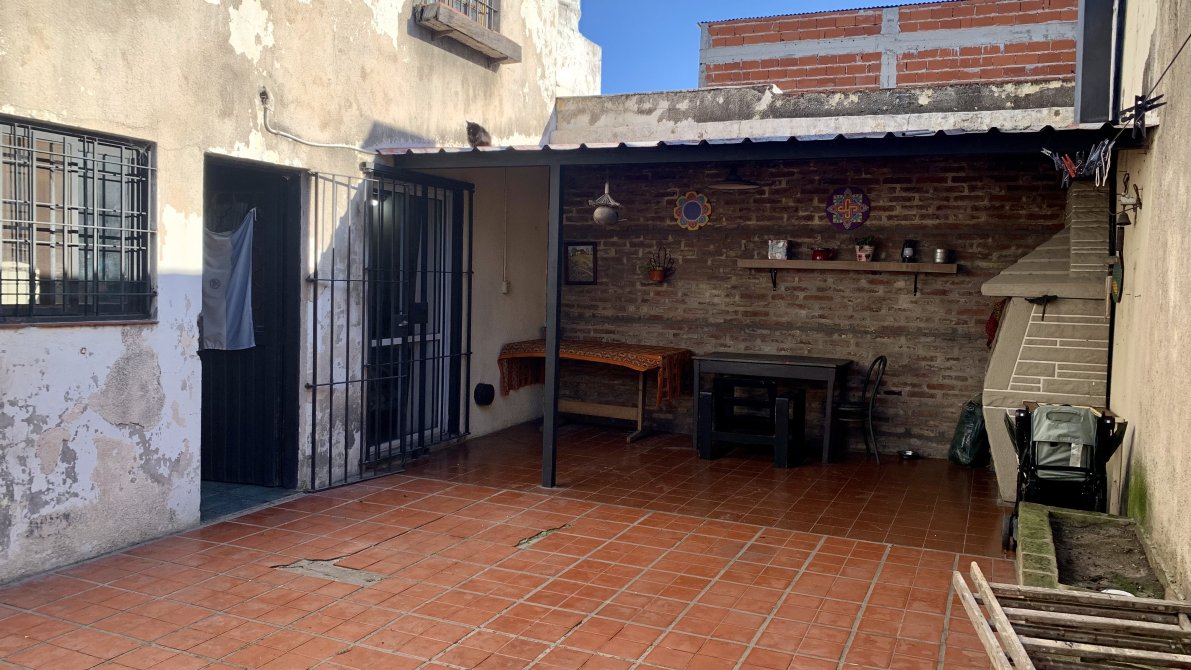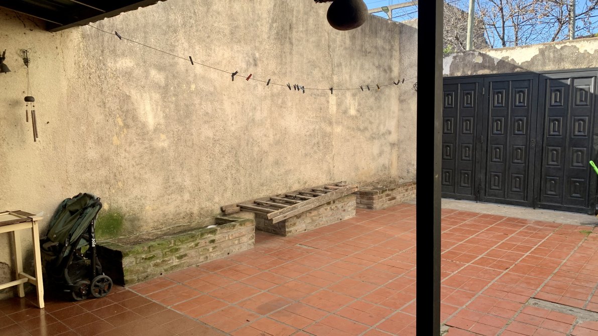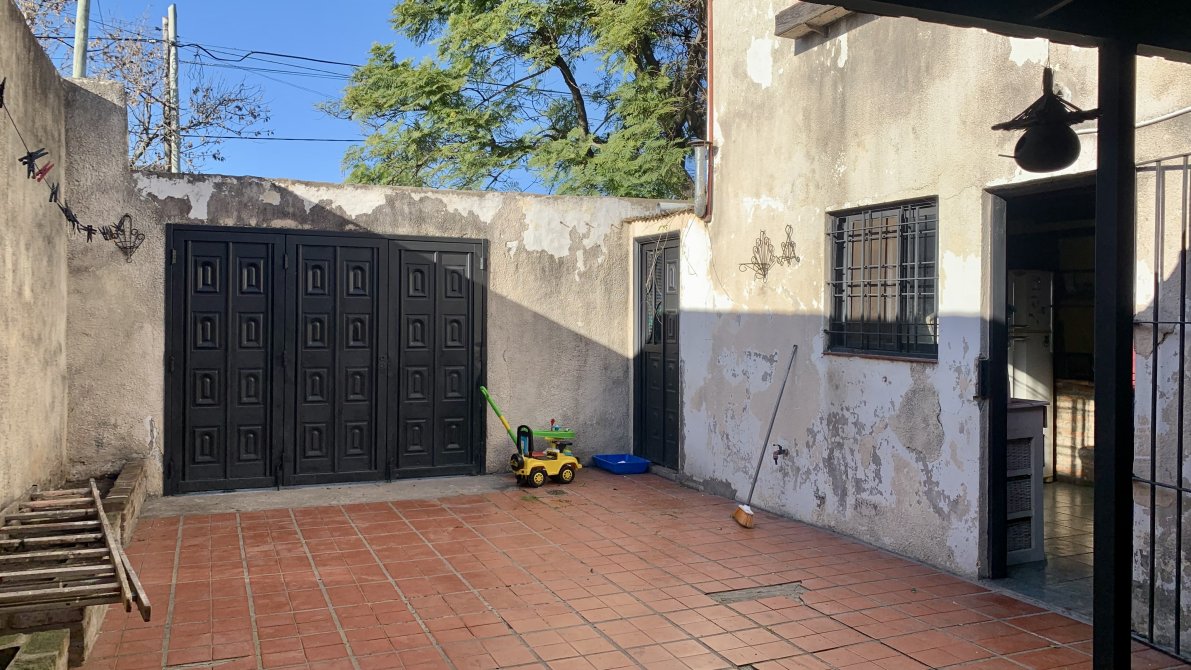 El patio es un espacio multifuncional al que se accede desde la cocina. Aquí se encuentra la entrada vehicular con capacidad para dos autos, un lavadero cubierto y una parrilla techada tipo galería.