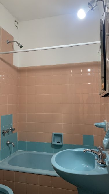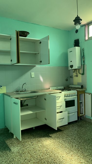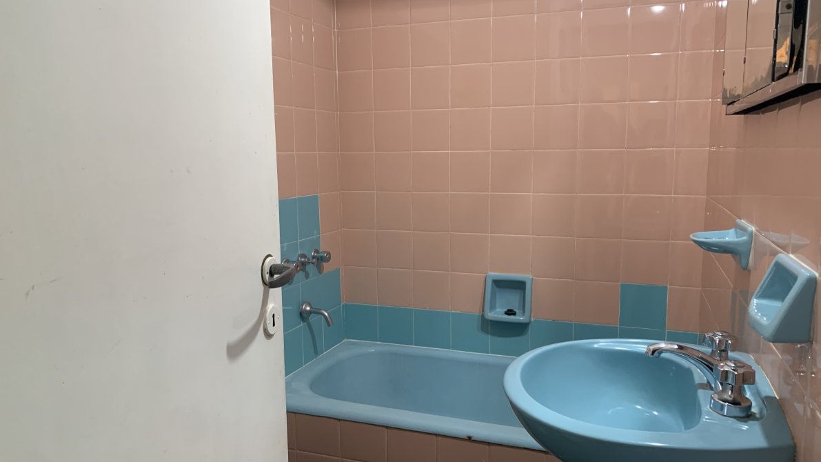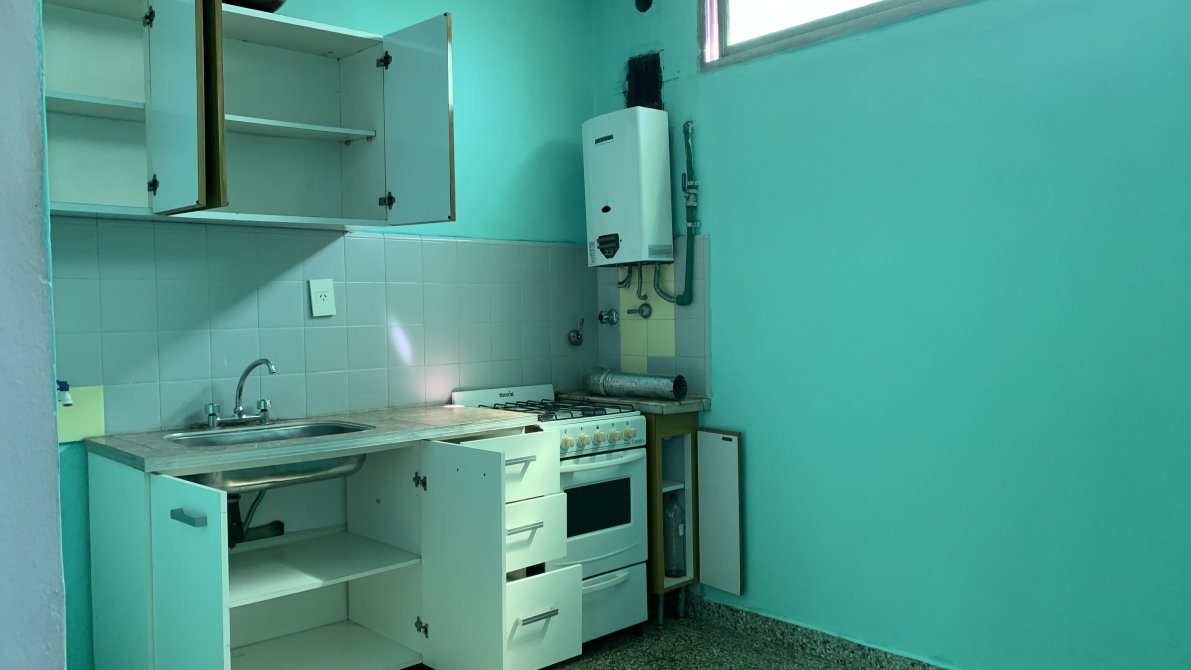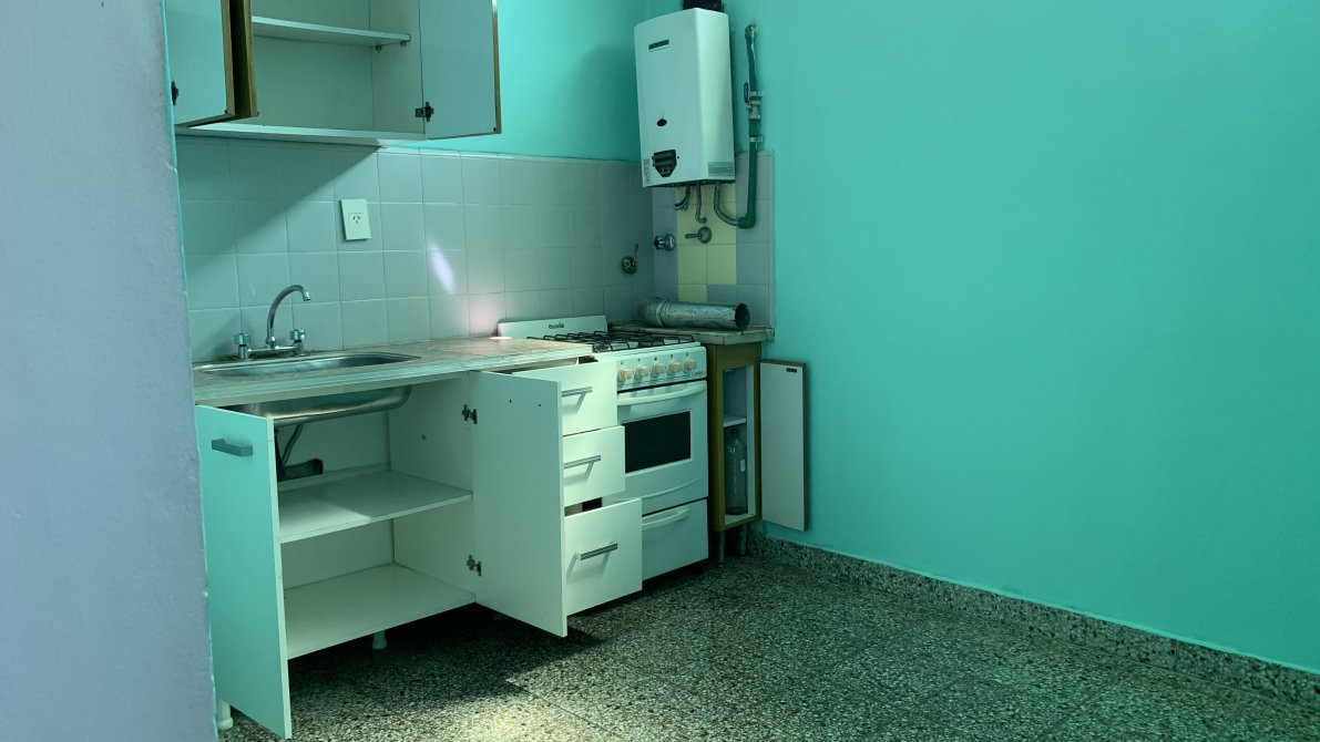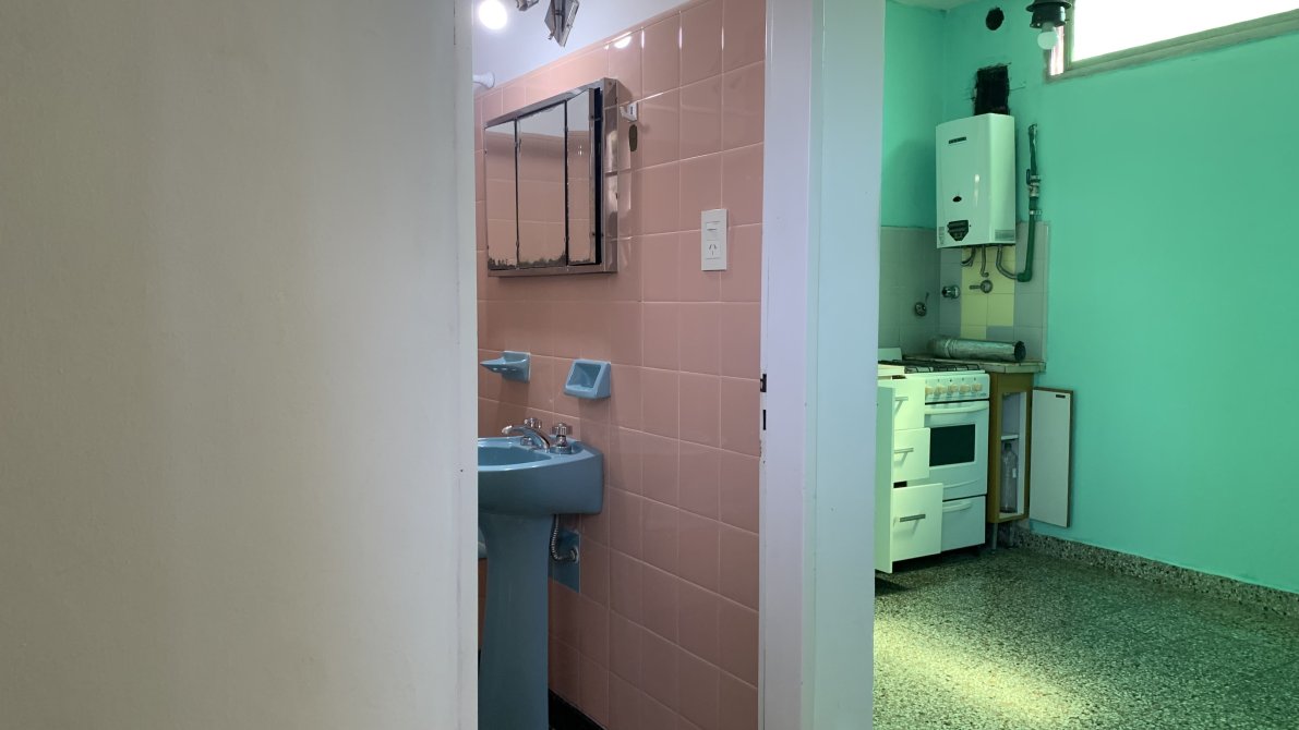 El departamento cuenta con un baño completo. Finalmente, el dormitorio incluye un amplio placard, brindando espacio suficiente para el almacenamiento.