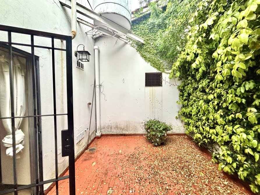 En el fondo, el jardín parquizado con parrilla ofrece un espacio ideal para reuniones familiares y disfrute al aire libre.