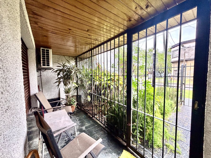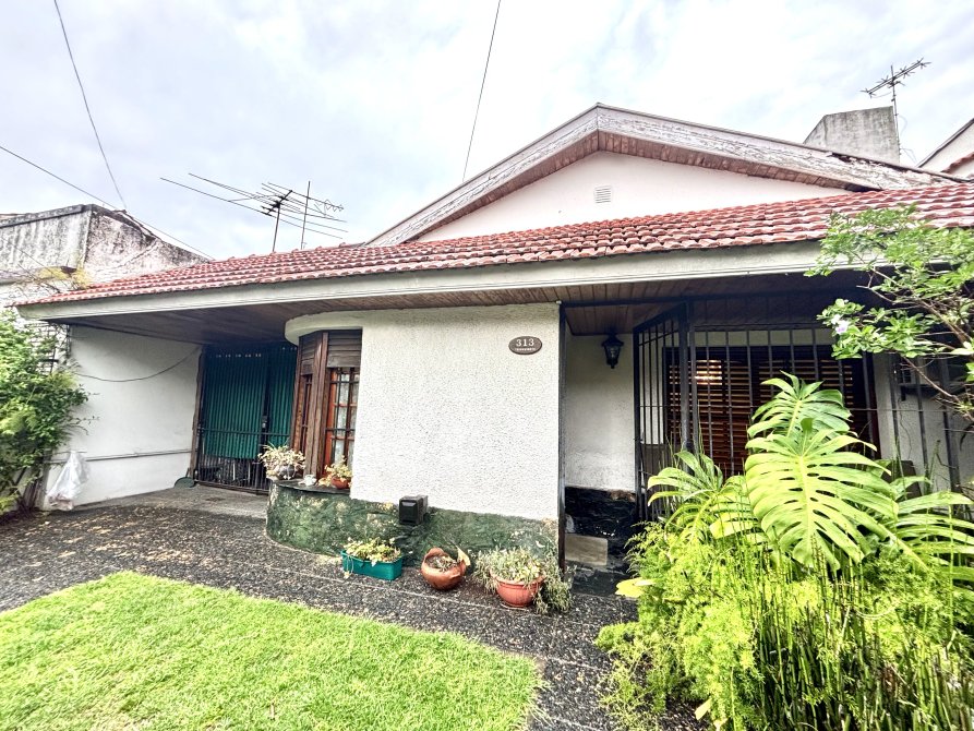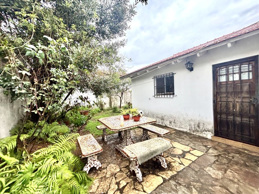 Hermosa propiedad con frente enrejado y jardín al ingreso. Al acceder, encontramos una entrada para auto descubierta y, a continuación, garage cubierto con capacidad para dos vehículos, que se conecta tanto con el jardín como con la cocina comedor.