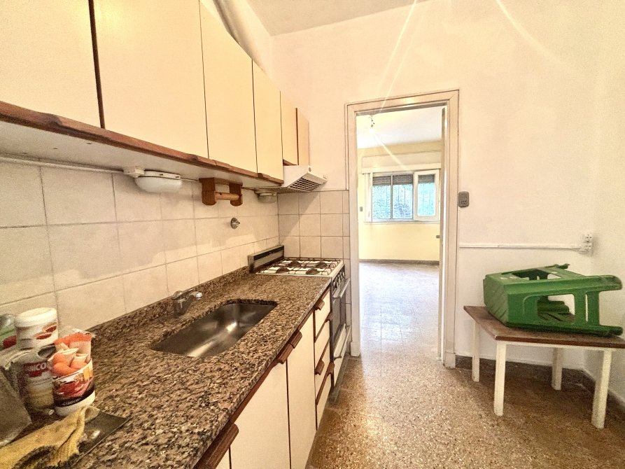 Al ingresar, encontramos un amplio living-comedor con ventana al pasillo, muy luminoso y ventilado. Desde el living se accede a la cocina independiente, de buenas dimensiones, la cual se conecta a un lavadero cubierto con salida al patio.
