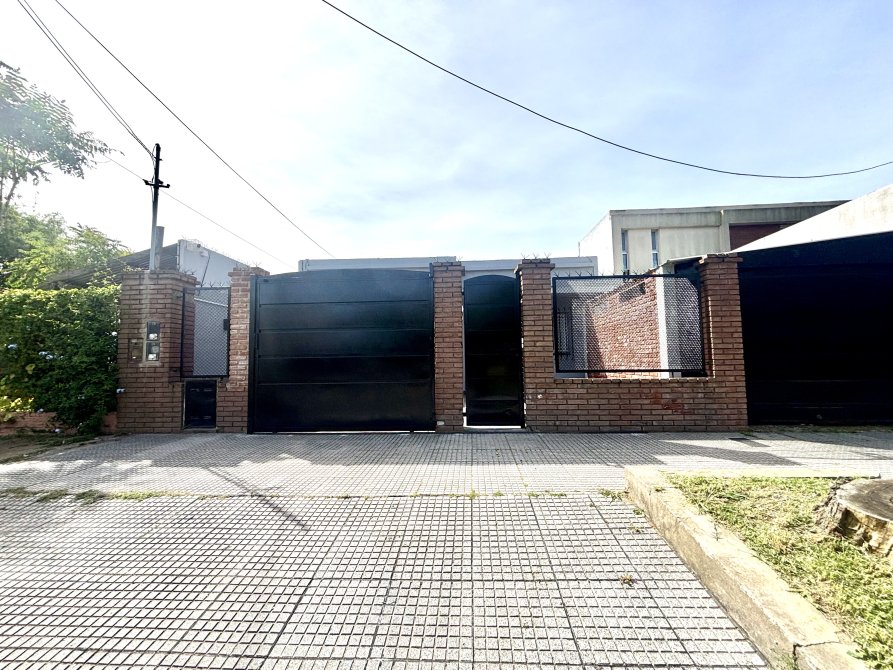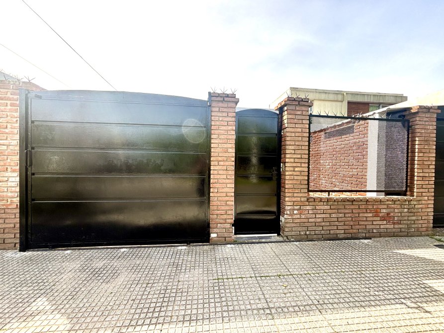 La propiedad cuenta con un frente con garage, visible desde la calle, junto a un portón de acceso y la puerta principal de ingreso. El garage dispone de un portón corredizo y capacidad para un automóvil.