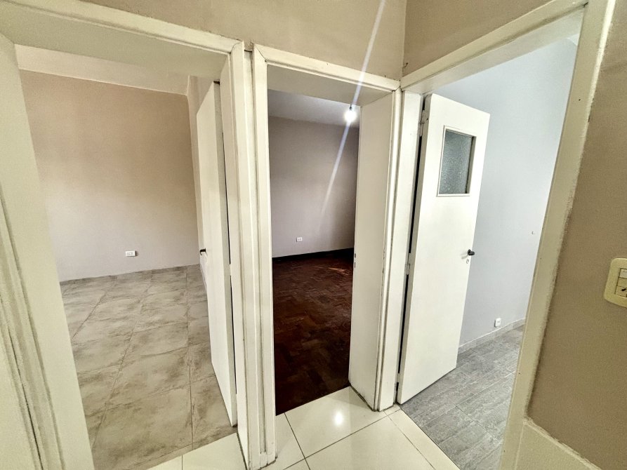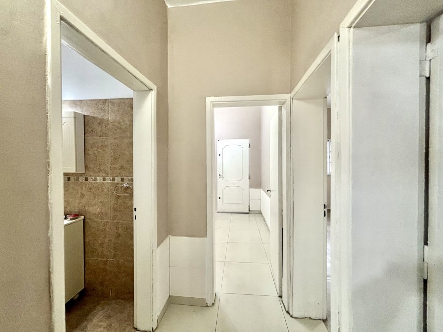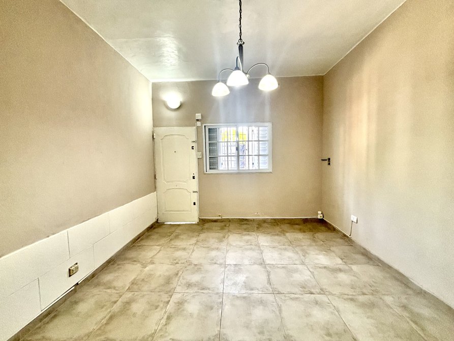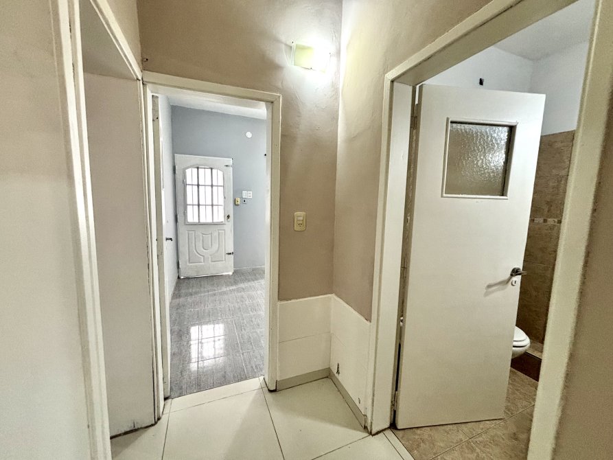 Al ingresar a la vivienda, se accede directamente a un living amplio y luminoso. Desde allí se conecta con un pasillo de distribución que conduce a los distintos ambientes de la casa. Sobre este pasillo se encuentran dos dormitorios, uno orientado al frente ( el que posee una puerta de ingreso desde el frente) y otro al contrafrente, ambos de buenas dimensiones.
