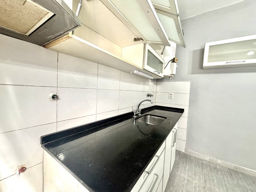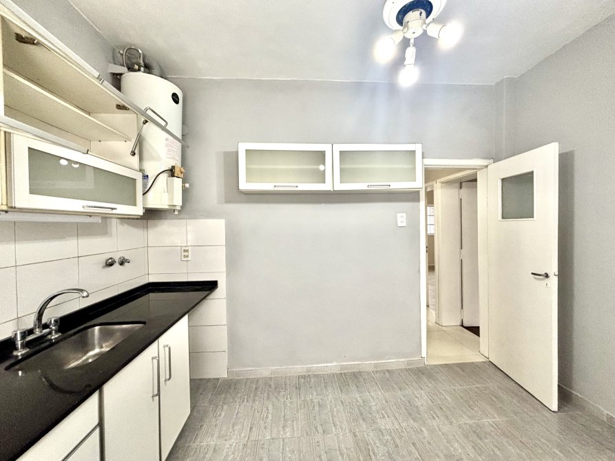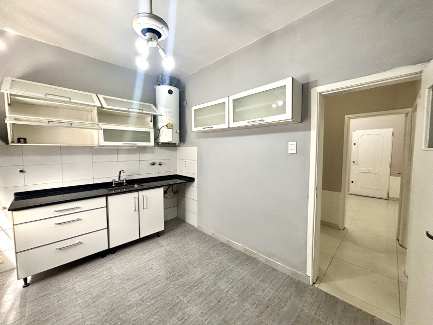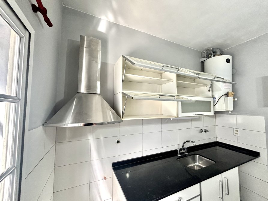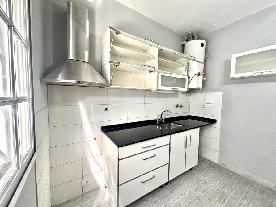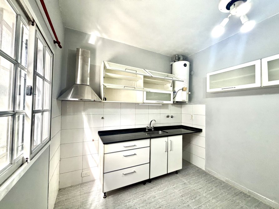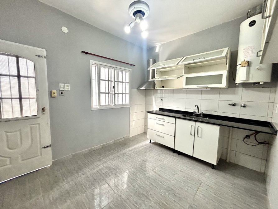 Al final del pasillo se encuentra la cocina-comedor, equipada con muebles bajo mesada y alacenas, extractor y termotanque.