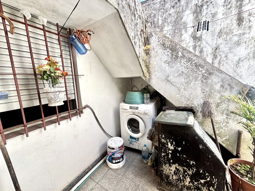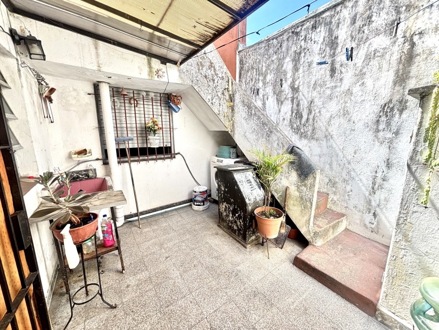 La cocina también posee salida directa al patio, un espacio práctico que cuenta con sector de lavadero, espacio de guardado bajo escalera y acceso a la terraza mediante escalera exterior. Desde este sector también se puede ingresar a la cochera cubierta, la cual es amplia y permite el ingreso cómodo de una camioneta.
