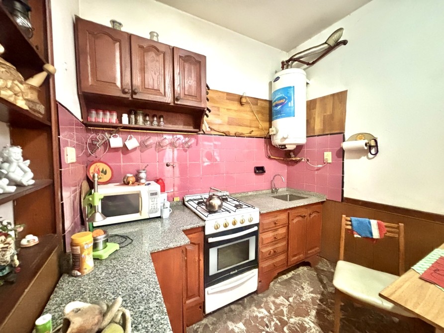 Al ingresar a la vivienda encontramos un living amplio y luminoso, con ventilación al frente a través de una ventana que aporta buena entrada de luz natural. Desde el living, una arcada conecta con la cocina comedor, un ambiente cómodo y funcional que cuenta con muebles bajo mesada y buen espacio de guardado.