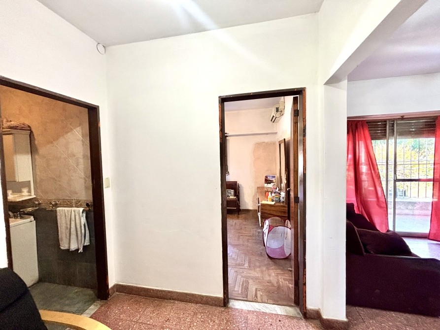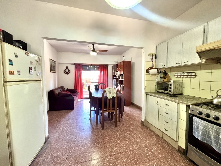 En planta alta, se encuentra el departamento de 3 ambientes, en muy buen estado general. El mismo cuenta con dos dormitorios (uno al frente y otro al contrafrente), baño completo, y cocina comedor y living integrados, levemente sectorizados.