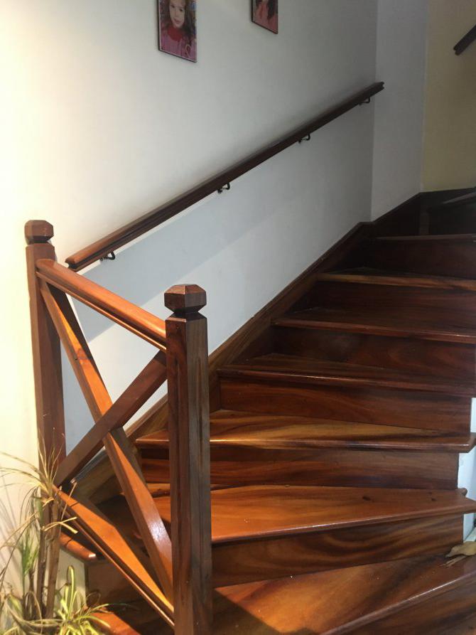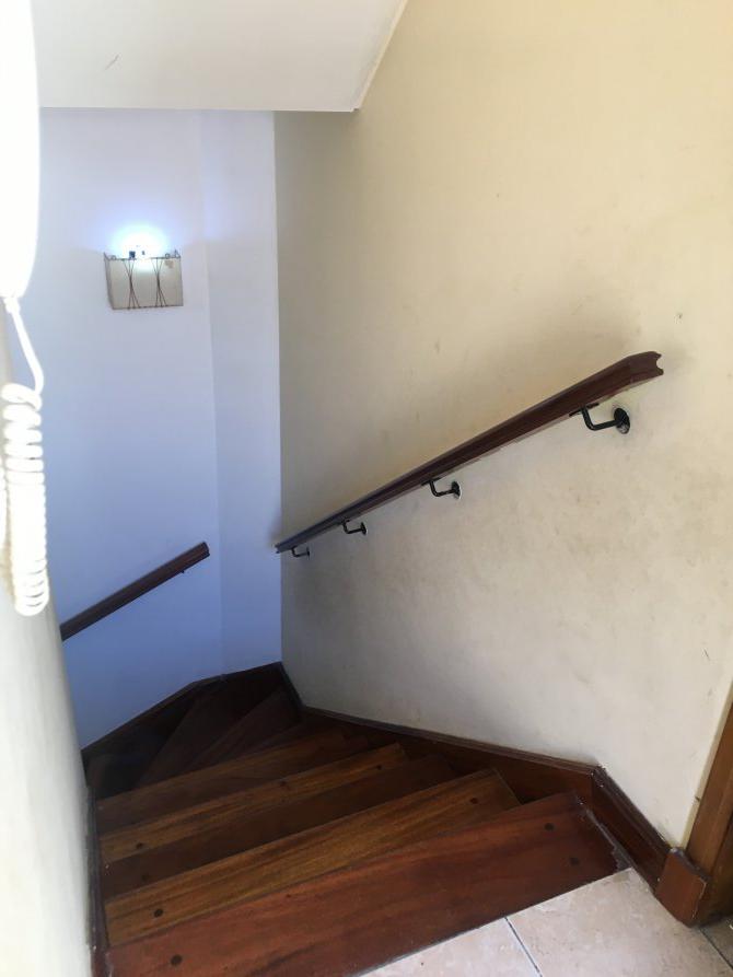 LIVING CON VENTANAS DE MADERA Y VIDRIOS REPARTIDOS, AMPLIA ESCALERA A 1º PISO -