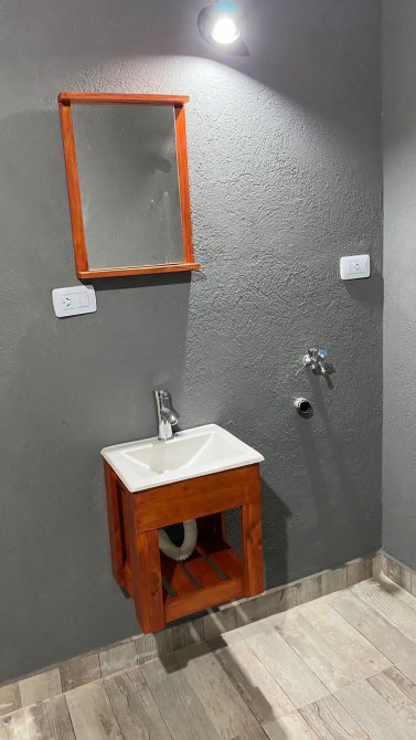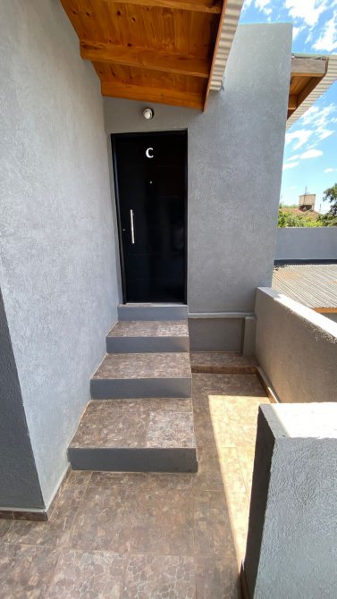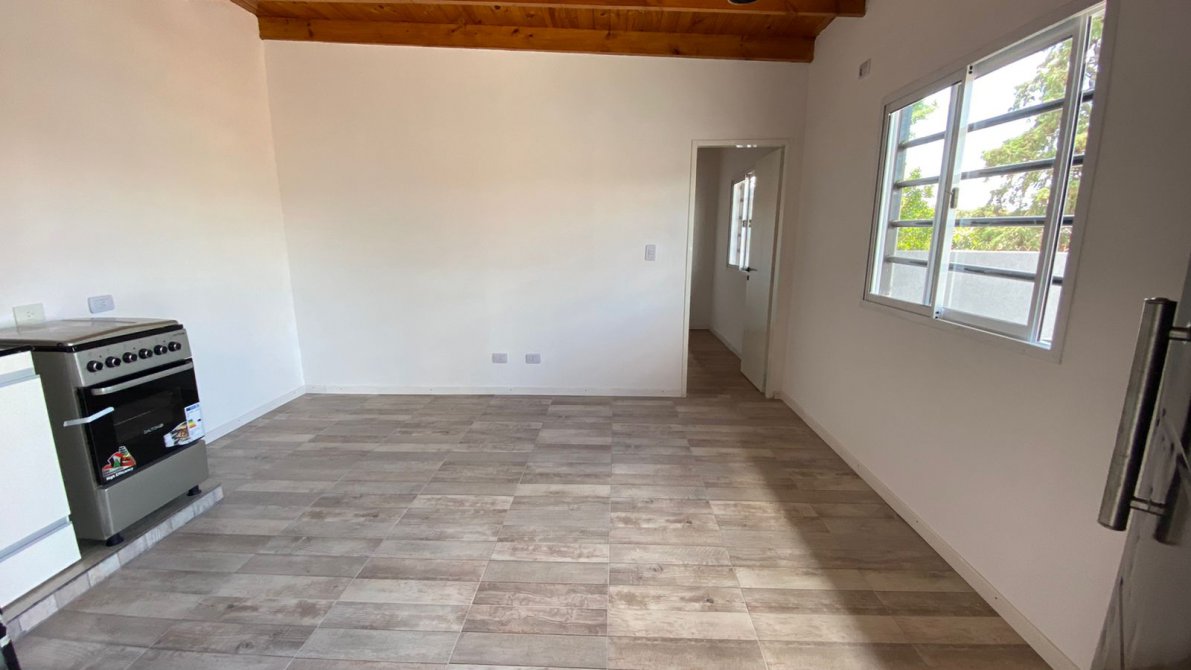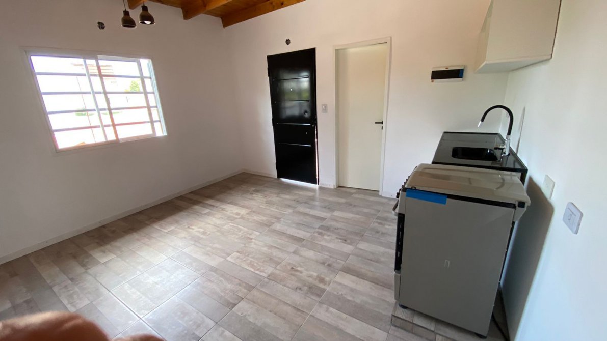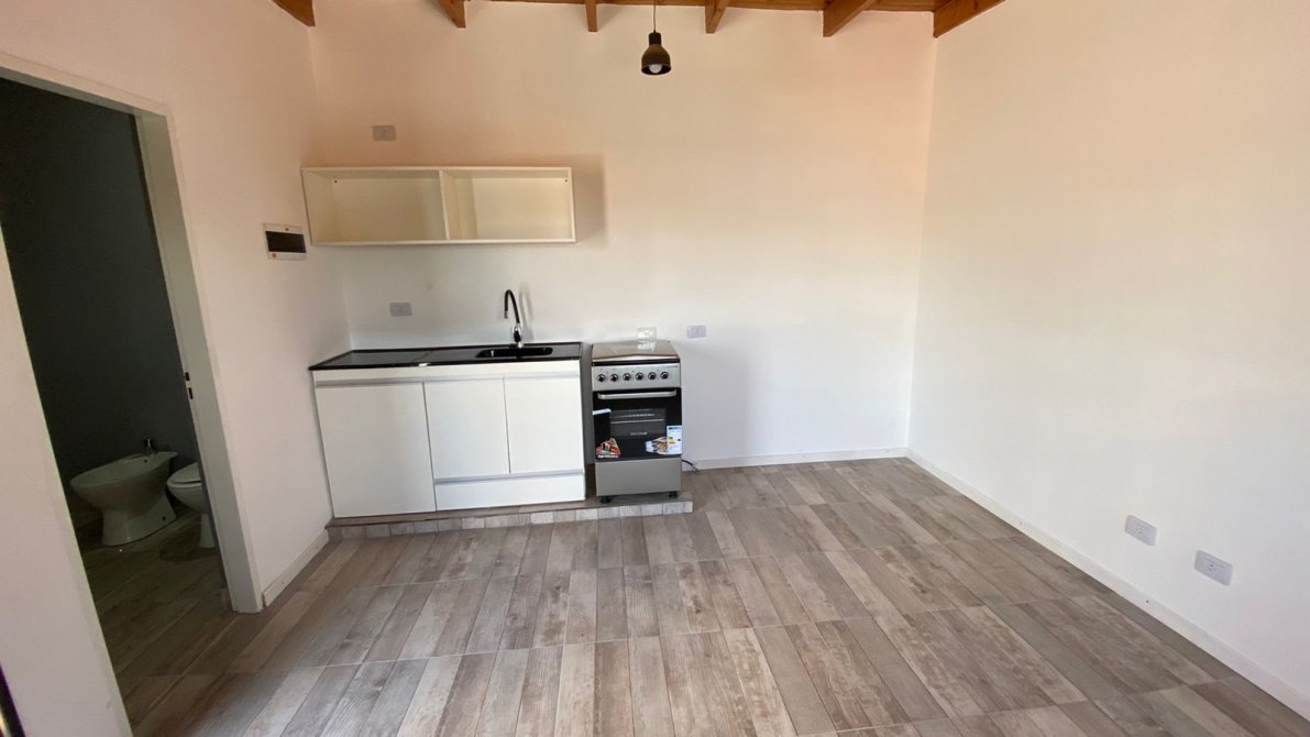 Entrada común, al departamento se ingresa por escalera, también compartida por otro depto. Ingresando al departamento nos encontramos con la cocina comedor con aparato de cocina, mueble bajo mesada y alacena colgante. El dormitorio posee ventana con rejas, y baño completo con vanitory colgante.