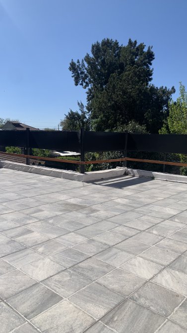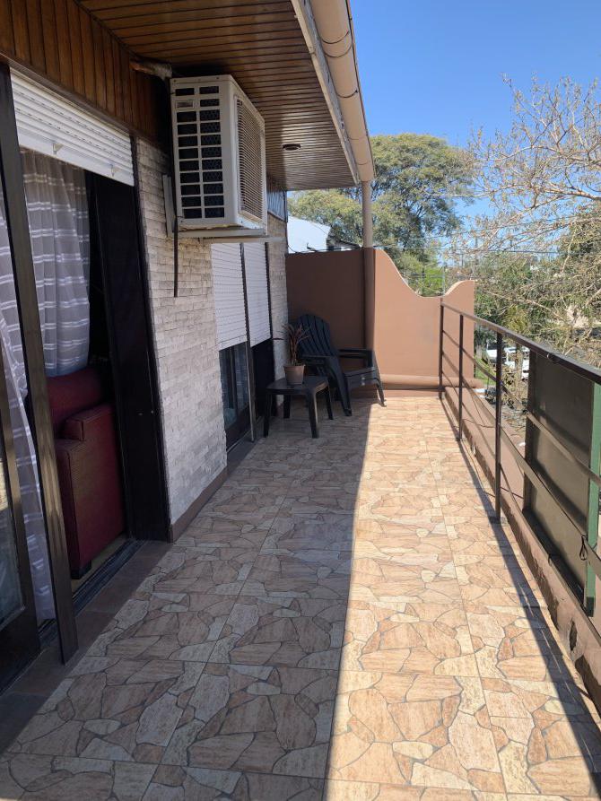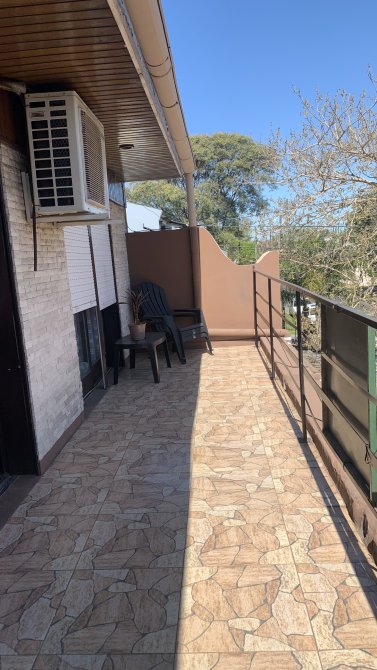 Acceso por escalera al living comedor, que posee dos ventanales con salida a un generoso balcón.