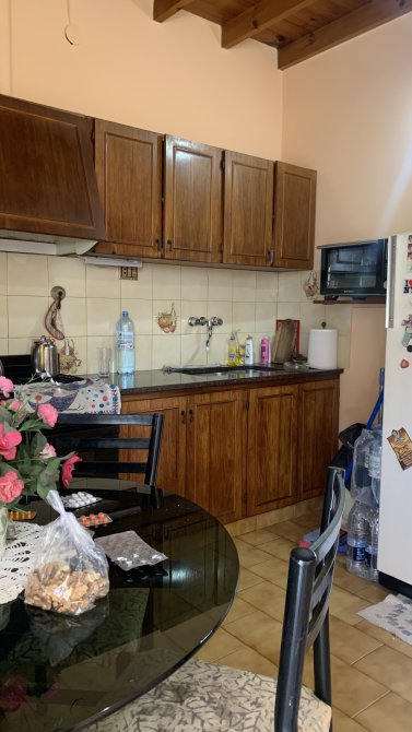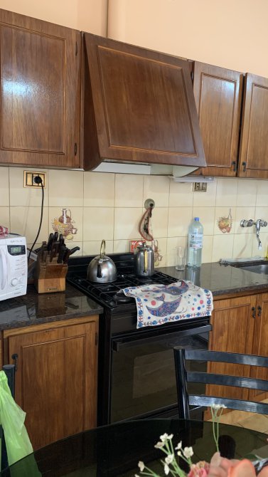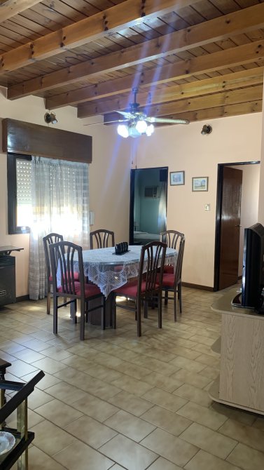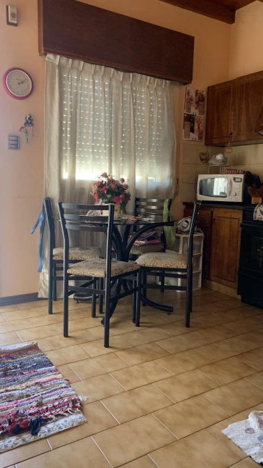 Cocina comedor con muebles bajo y sobre mesada. Baño completo. Dormitorio con aire acondicionado y con ventana con rejas hacia el patio trasero.