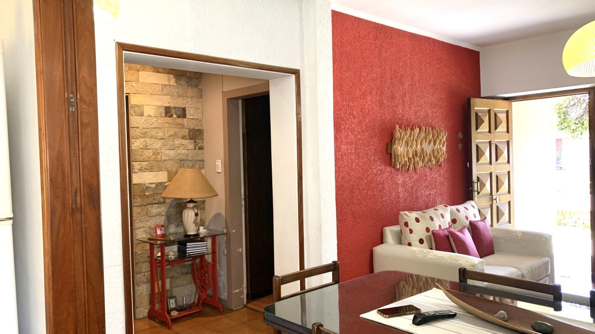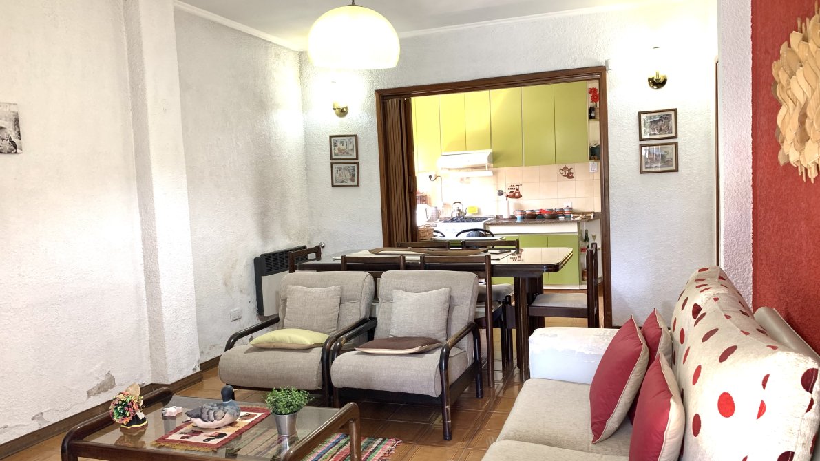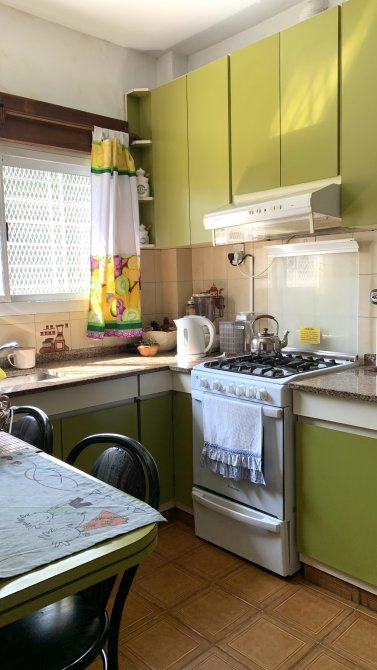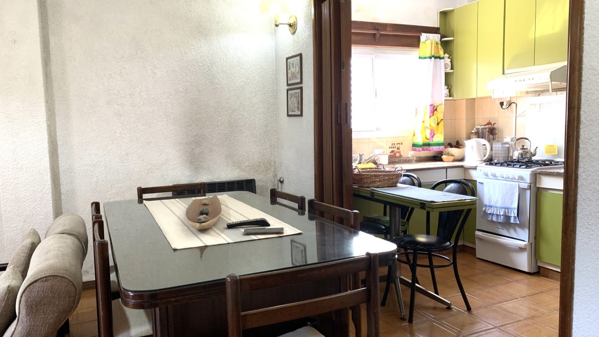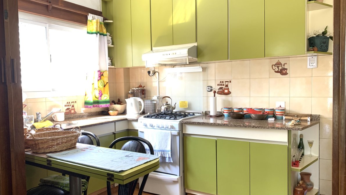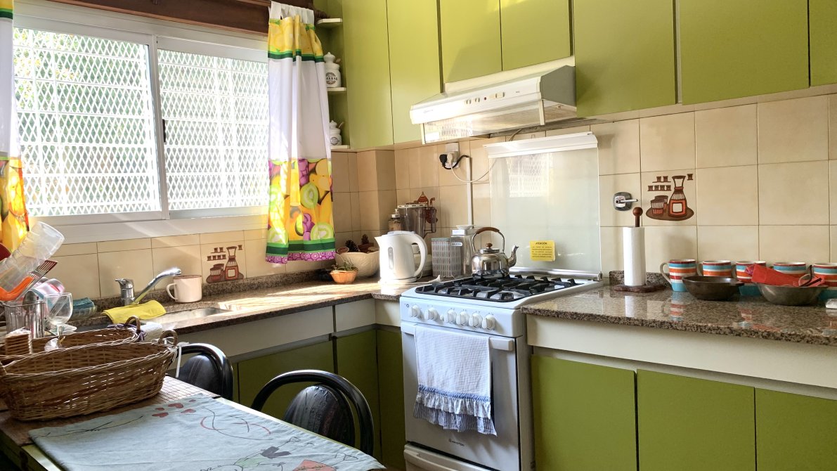 Al ingresar a la vivienda, nos recibe un amplio living con estufa, que se conecta de manera fluida con la cocina. Esta última cuenta con muebles bajo y sobre mesada, brindando un espacio cómodo para el almacenamiento. Desde la cocina, se accede a un lavadero independiente, que a su vez conecta con una galería cubierta equipada con una parrilla.