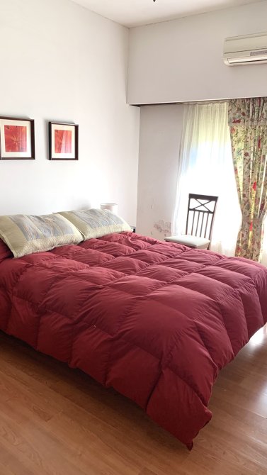 El dormitorio principal, con piso flotante, tiene una ventana que da al frente y un espacioso placard.