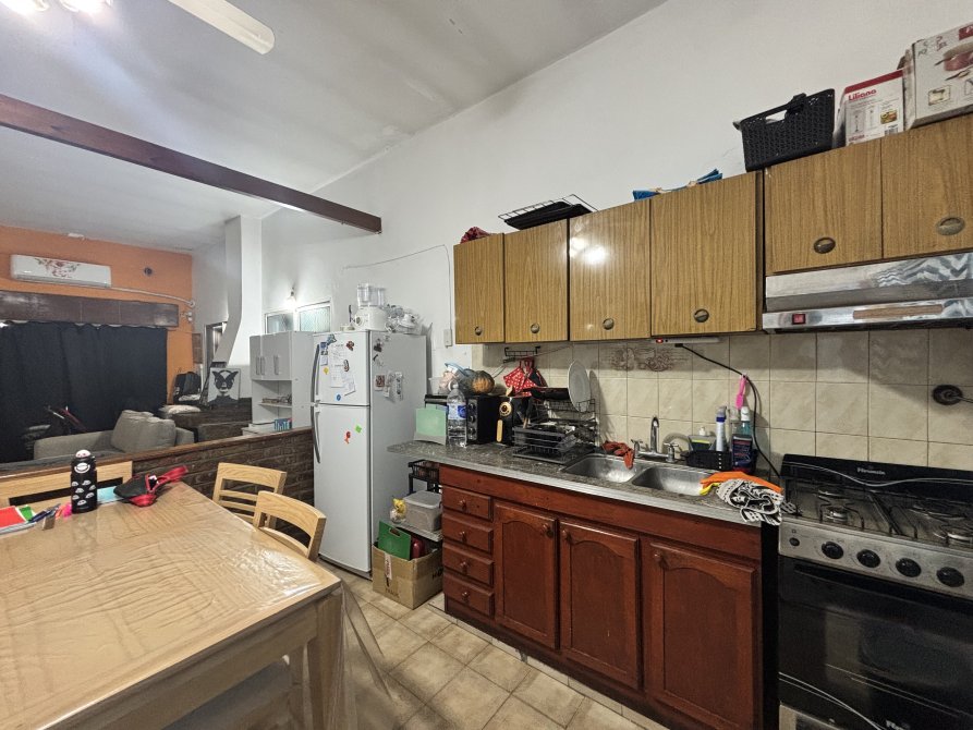 Desde la cocina se accede al jardín trasero, el cual cuenta con un galpón, un lavadero independiente y un espacio verde ideal para disfrutar al aire libre.