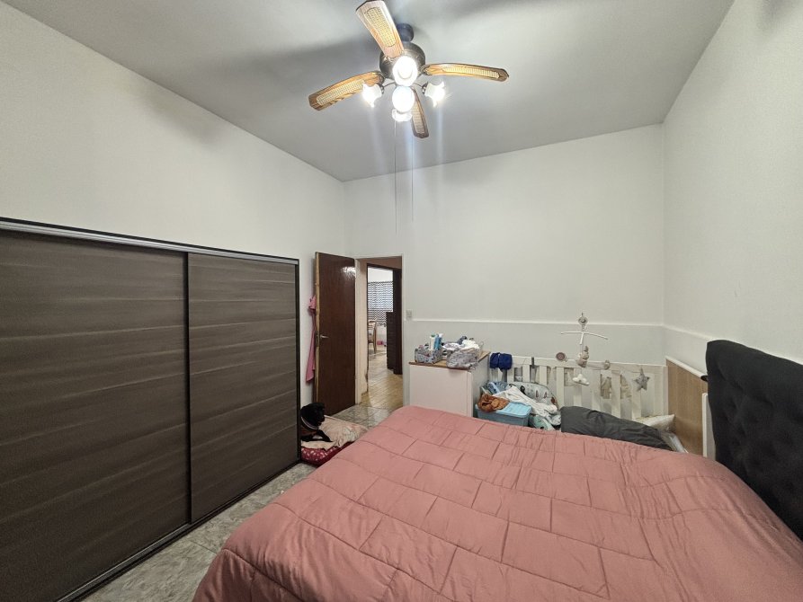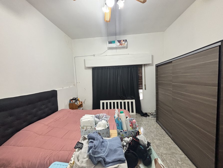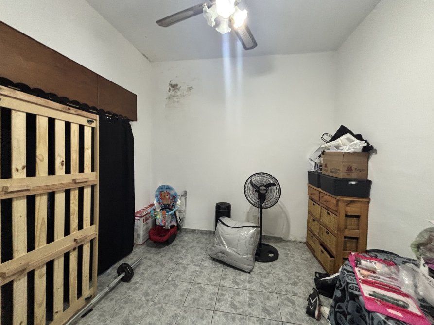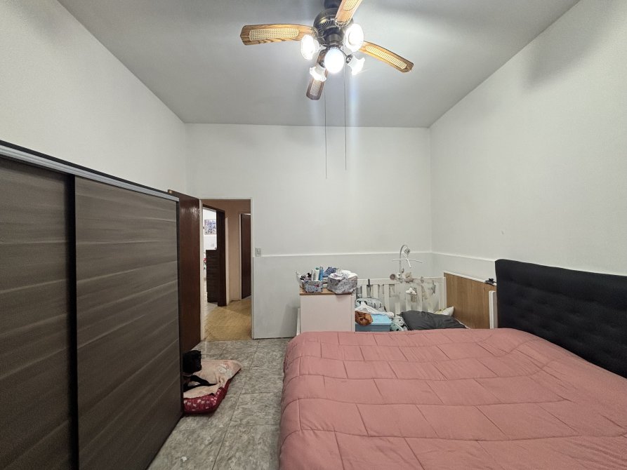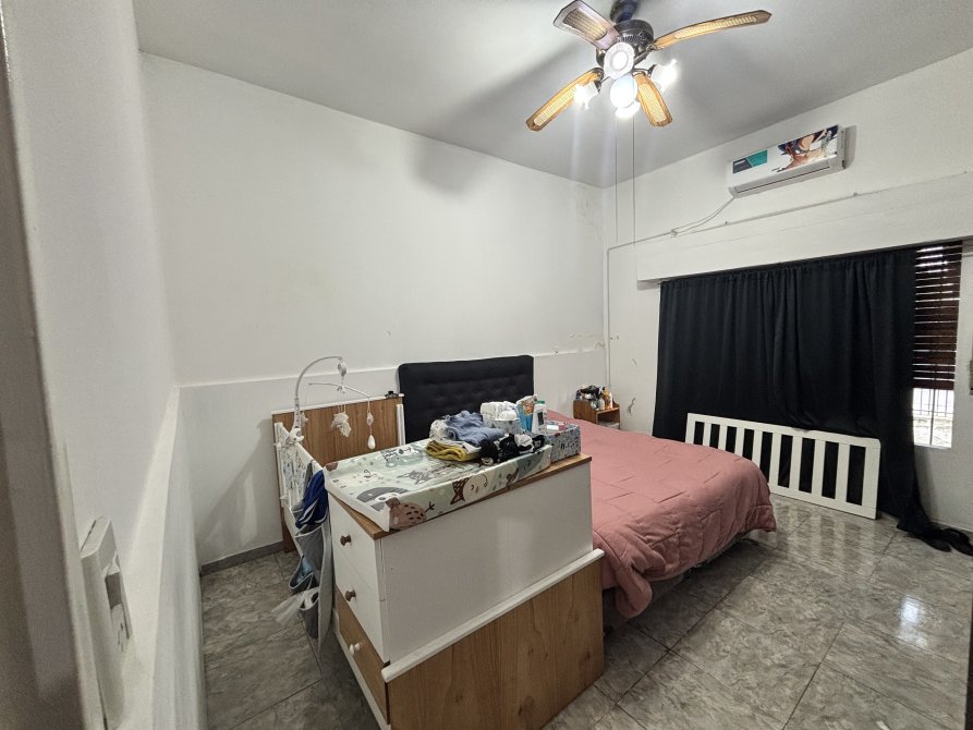 Un pasillo de distribución conecta con la zona privada de la vivienda, donde se ubican dos dormitorios: uno orientado al frente y otro al contrafrente, junto a un baño completo.