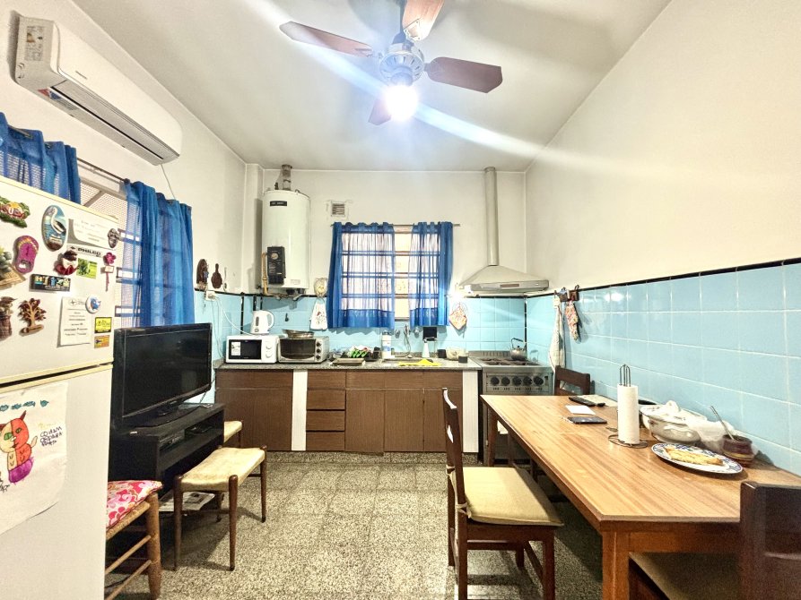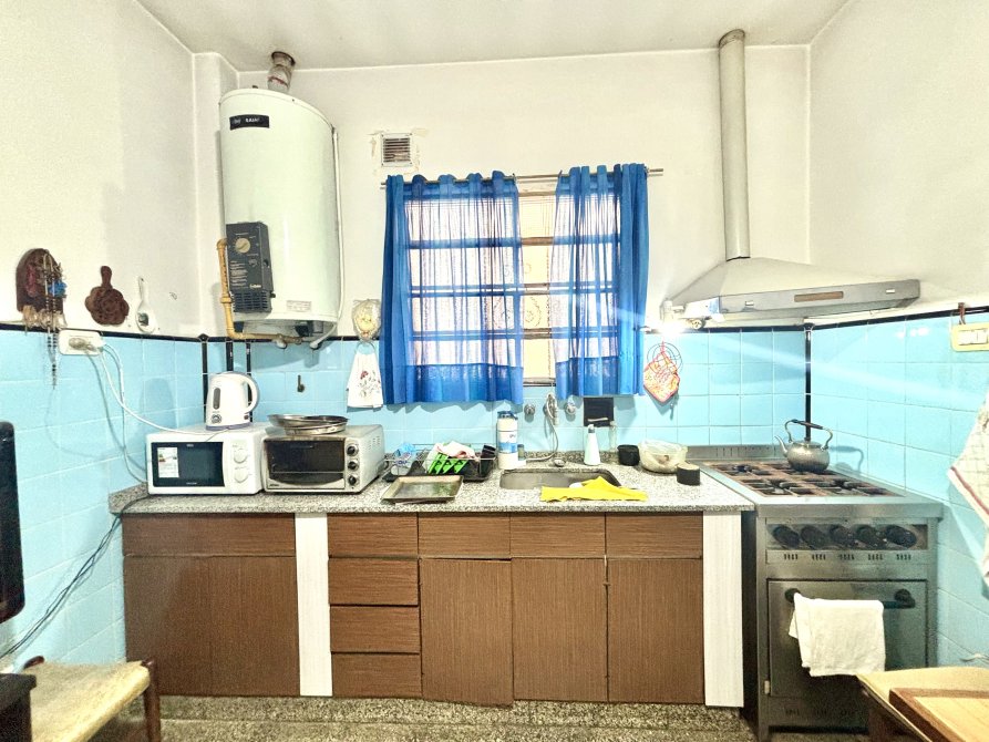 • Cocina comedor equipada con artefacto de cocina, muebles bajo mesada y sobre mesada, con salida directa al patio.