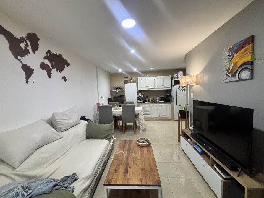 Al ingresar a la propiedad se accede a un living comedor luminoso, con cocina integrada, equipada con muebles bajo mesada y alacena.