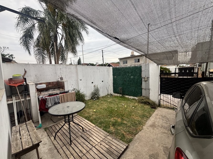 Cuenta con entrada para auto / garage, y un pequeño jardín al frente.